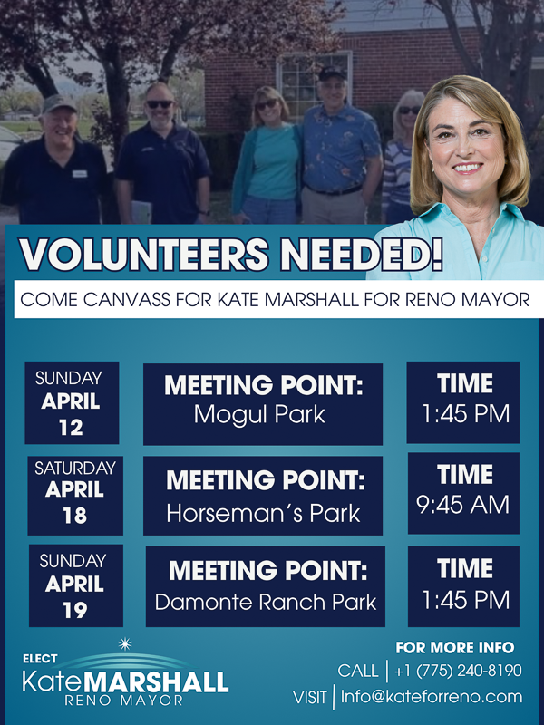 Come Canvass for Kate Marshall for Reno Mayor