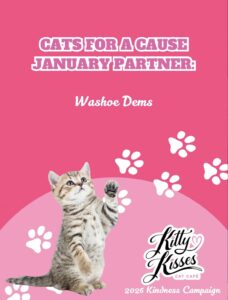 The WashoeDems are partnering with Kitty Kisses Cafe for their Cats for a Cause promotion. We are partnering with them to raise awareness for their cause and promote adoptions!