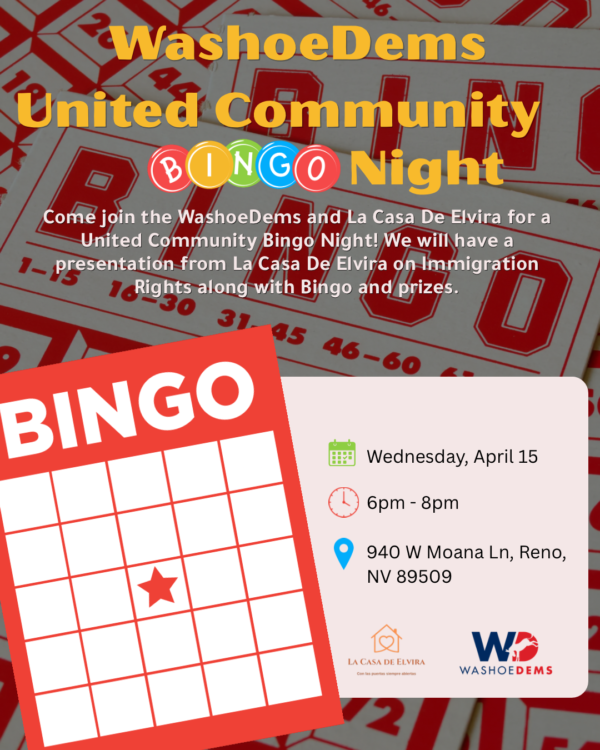 Come join the WashoeDems and La Casa De Elvira for a United Community Bingo Night!