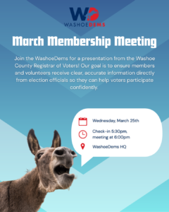 Location: WashoeDems HQ or virtually via Zoom: https://us02web.zoom.us/meeting/register/pbEIBgisTregyEQeXu8v_Q